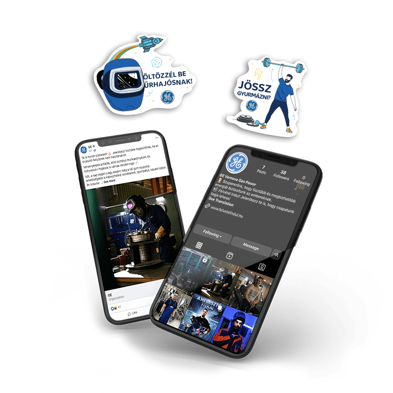 Zentrales Element der Kampagne war ein im Stil eines Actionfilm-Trailers produzierter Kurzfilm mit Mitarbeitenden von GE Vernova in den Hauptrollen, ergänzt durch spezifische Schnitte für die drei Fokuspositionen. Zur Bewerbung des Films und zur Unterstützung des Recruitings entwickelten wir eine Karriereseite, auf der sowohl die Unternehmenswerte als auch die offenen Positionen dem filmischen Konzept folgend präsentiert wurden. Entlang der Storyline entstanden zudem digitale Inhalte und Grafiken für Facebook und Instagram – etwa GIFs und Sticker –, die mithilfe von Anzeigen gezielt an die Zielgruppe ausgespielt wurden.